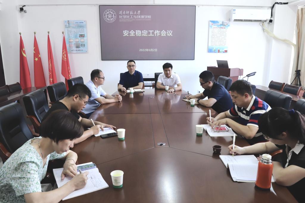 6月2日上午,化学学院安全稳定工作在会议室召开,会议由院长汪庆祥主持,学院党政领导班子及科室负责人参加会议。会上,学院党委书记李苗传达学校维稳工作会议精神,并对学院近期工作做了详尽部署:严格落实值班安排,要求值班人员24小时在岗,保持手机畅通;落实校园安全管理,特别是实验室开展实验、药品管理、人员调配等方面的安全措施要到位;严格落实节假日期间师德师风建设,做好提醒、监督工作。汪庆祥表示目前防控工作的常态化,要求我们针对不同形势及时调整政策,让疫情防控与教学、科研等工作齐头并进、同步进行;强调学院各科室要做好服务工作,深入师生,提前了解师生所需和现存问题,及时化解。