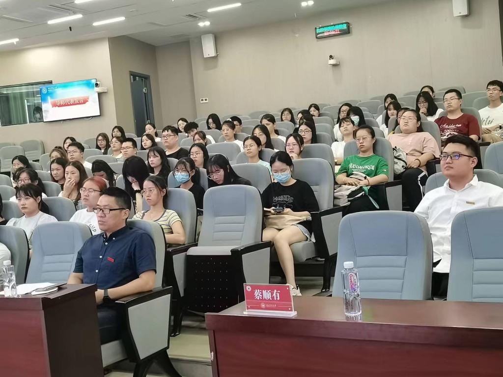 2022级硕士研究生新生见面会于达南206隆重举行。院党委副书记、副院长张茂升,院党委副书记裴新星,副院长张骁,副院长陈建华,团委书记、研究生辅导员杨文亮,研究生秘书周玉贞,副教授蔡顺有及全体2022级研究生共同参加会议。会议由院党委副书记裴新星主持。