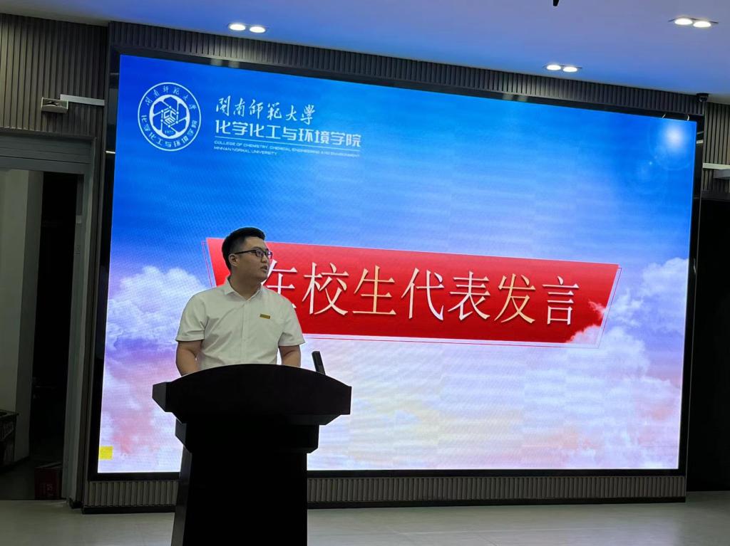 2020级无机化学专业的牛百通同学作为在校生代表发言。牛百通同学向新同学们分享自己宝贵的学习经验和心得体会,希望各位同学能够目标明确,理想坚定,求真务实,不断发扬刻苦钻研的精神。