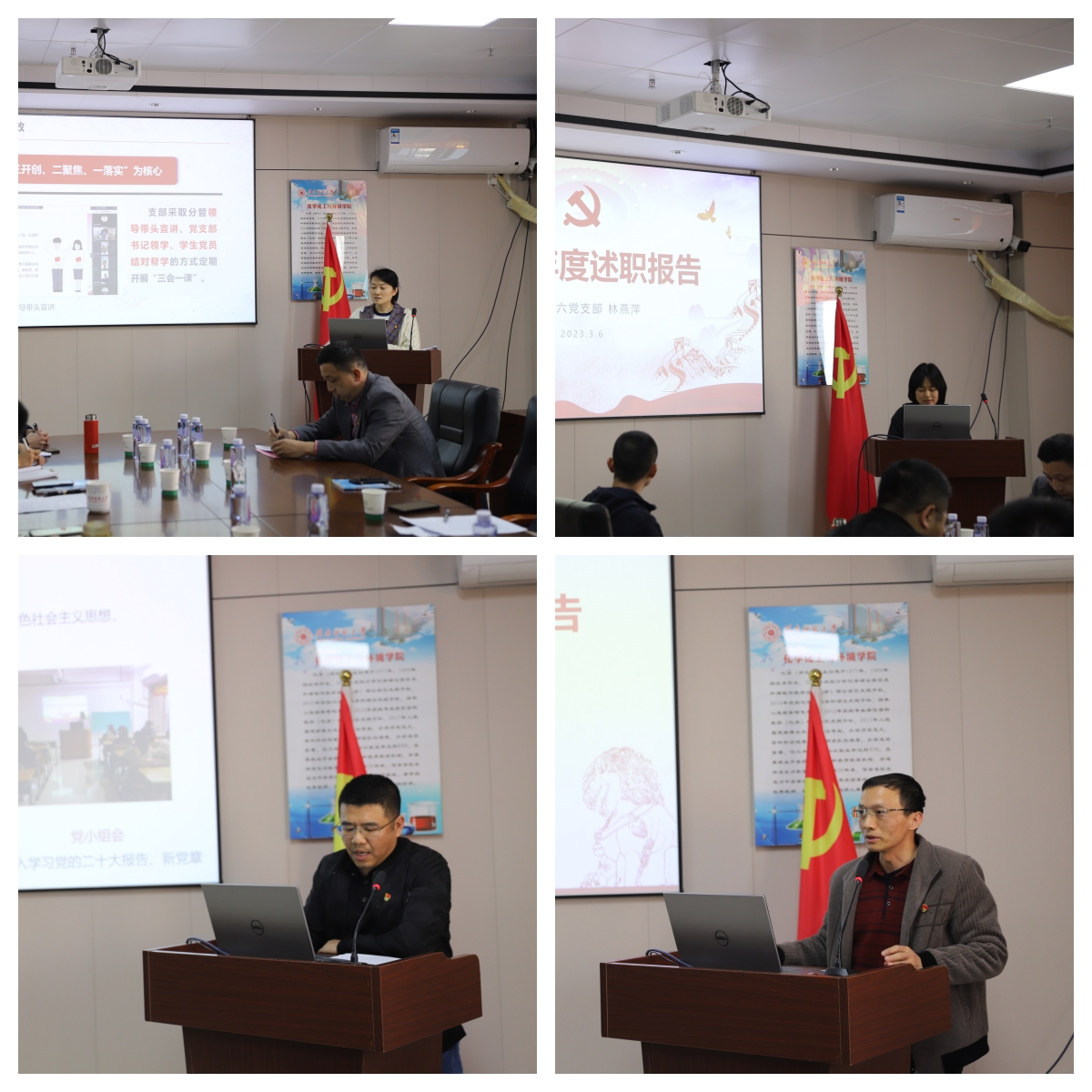 述职评议会上,学院8位党支部书记进行现场述职,1位党支部书记进行书面述职,大家聚焦深入学习贯彻习近平新时代中国特色社会主义思想和党的二十大精神,推动党组织履行抓基层党建工作主体责任,以及年度重点工作完成情况、党建工作创新情况、存在问题与分析、2023年工作思路举措等方面依次进行汇报。他们讲亮点、找不足、谋思路,交出了年度“党建答卷”,画好今年党组织建设“新蓝图”。