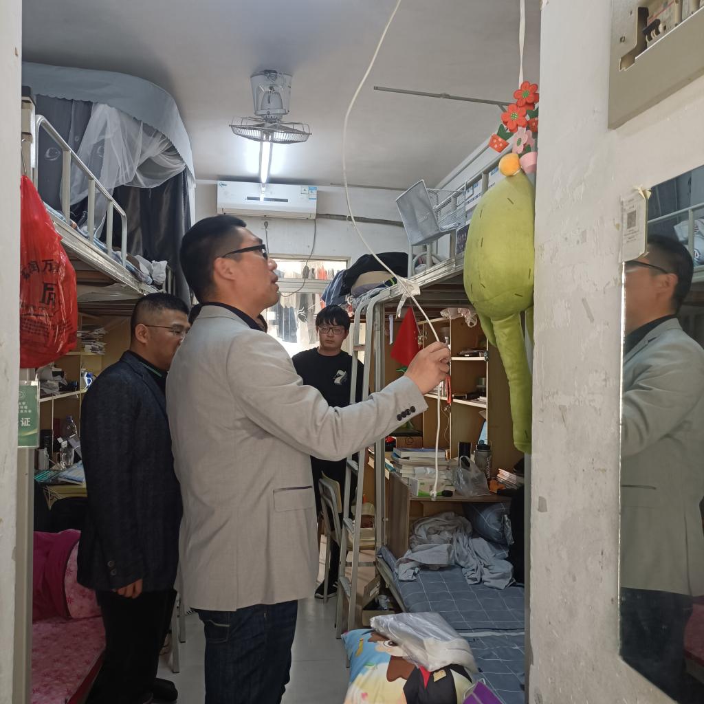 走访中,裴新星副书记仔细了解了同学们返校后的学习生活和近期的期末考试等情况,鼓励同学们要坚定目标,勤奋学习,同时要注意劳逸结合,积极参与体育锻炼,增强体魄,并提醒同学们要注意保持宿舍干净整洁,勤通风。此外,裴副书记还对宿舍存在的用电安全和消防设施存在的隐患进行了排查,引导教育学生时刻保持安全意识。