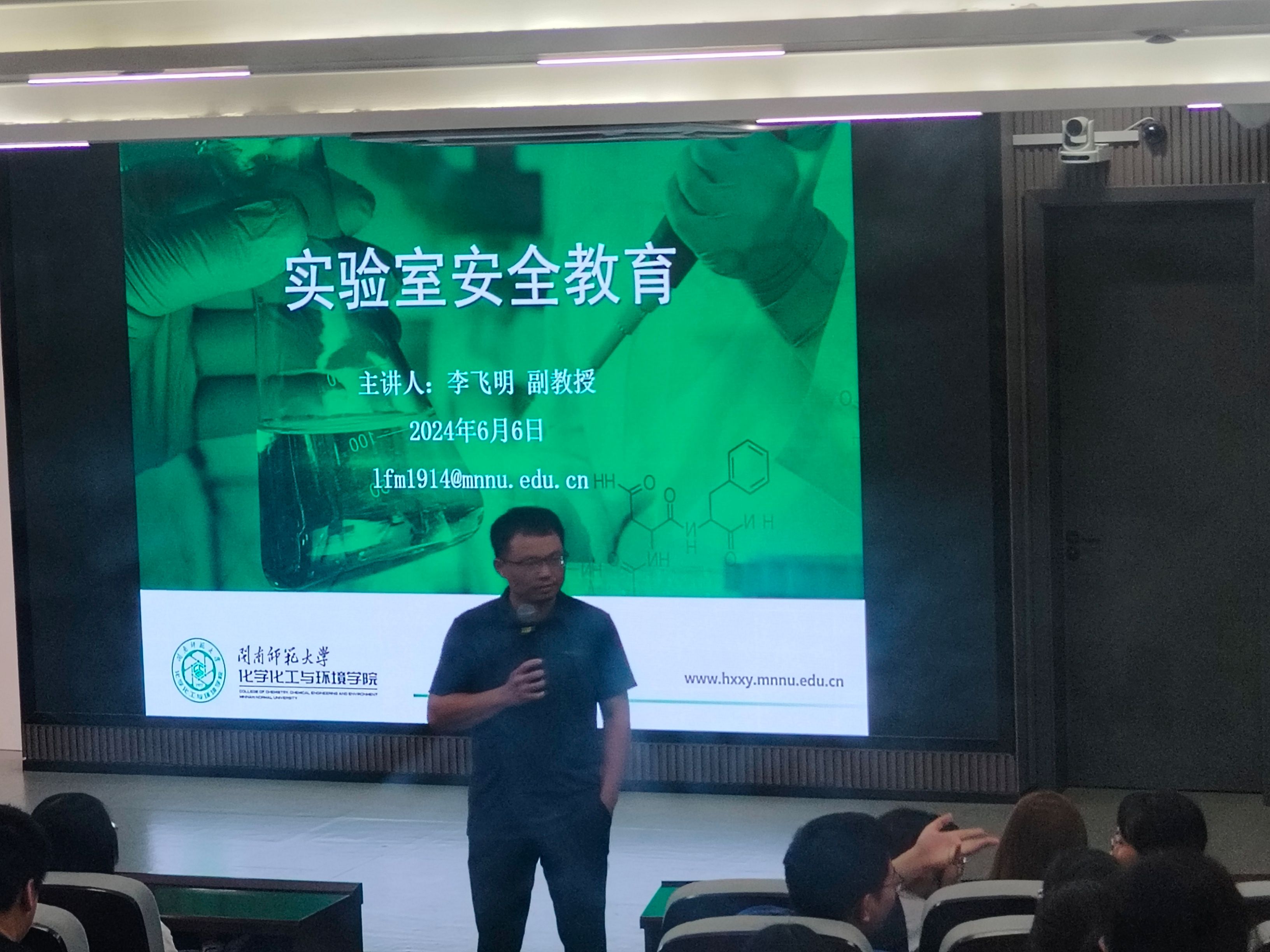 于6月6日下午在达理楼南区206举办“实验室安全知识讲座”。本次讲座由李飞明副教授担任主讲嘉宾,学院本科生、研究生410余人参加。