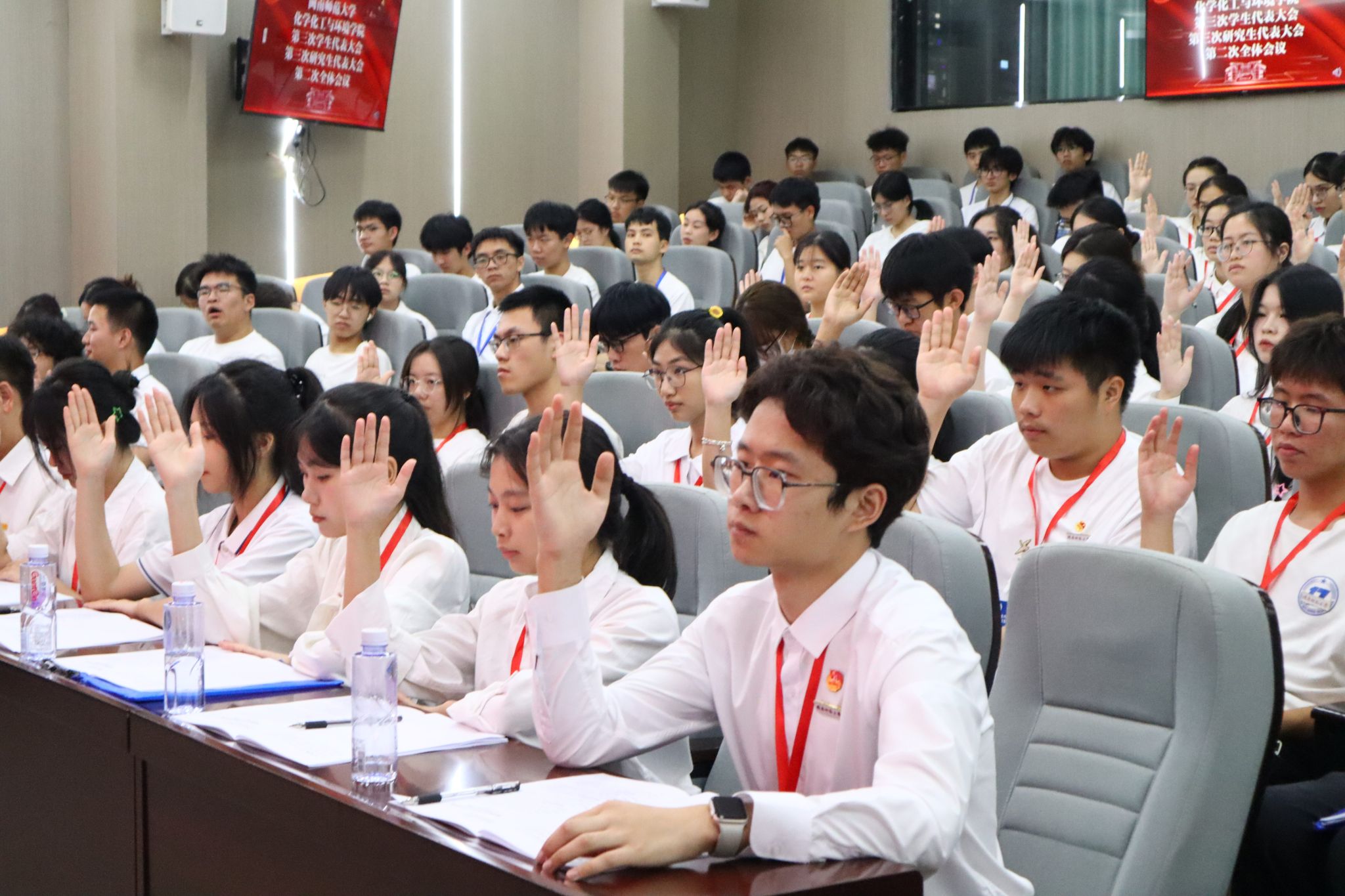 学生会以及研究生会可以直面工作中的挑战,敢于创新,焕发出与时俱进的青春气息,希望同学们以此次大会的胜利召开为新的契机,坚定信念、练就本领、勇于创新、强化担当,书写化学院发展的新篇章!