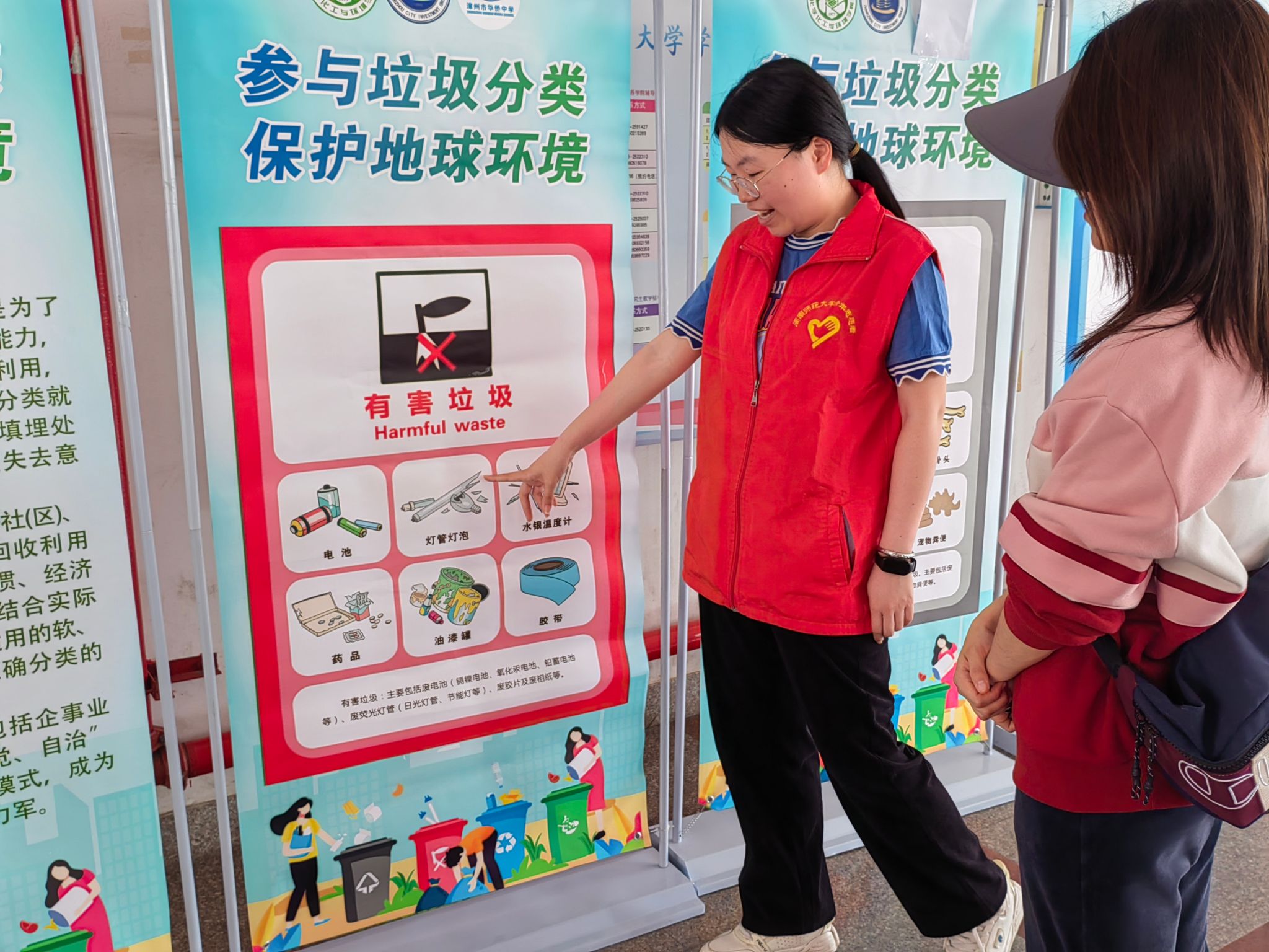 学院学生发挥专业特长,精心设计了环保展板。展板采用图文并茂的形式,展板系统性地呈现了“垃圾分类的原理与价值”“日常生活垃圾精准分类指南”“节水妙招与实践案例”等内容,形成了一条别具特色的“环保知识长廊”。引发在场同学们的强烈共鸣,他们纷纷作出环保承诺:拒绝水浪费、坚持垃圾分类投放,用实际行动践行绿色生活理念。