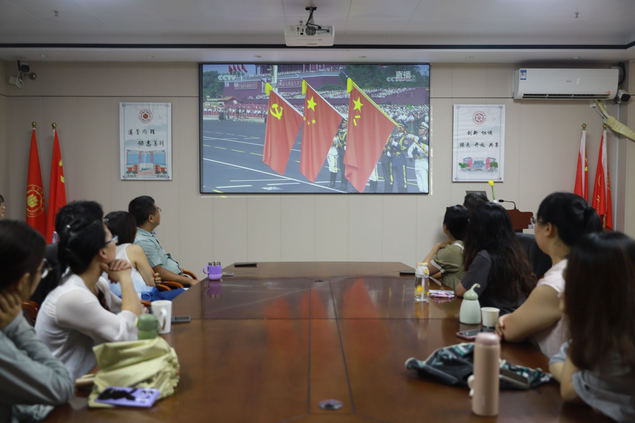 9月3日上午9时,纪念中国人民抗日战争暨世界反法西斯战争胜利80周年纪念大会在北京天安门广场隆重举行。中共中央总书记、国家主席、中央军委主席习近平发表重要讲话并检阅部队。此次阅兵,是以习近平同志为核心的党中央,团结带领全党全军全国各族人民,全面推进中国式现代化进入新征程的首次阅兵,是人民军队奋进建军百年的崭新亮相,是伟大抗战精神和伟大民族精神在新时代赓续传承的重要体现,是坚持弘扬正确二战史观、坚决维护战后国际秩序、坚定捍卫国际公平正义的郑重宣誓。学院组织全体师生观看此次纪念大会,共同见证这一庄严时刻,并结合学习工作实际,主动分享观礼感悟,深刻理解伟大抗战精神的历史价值与时代内涵。