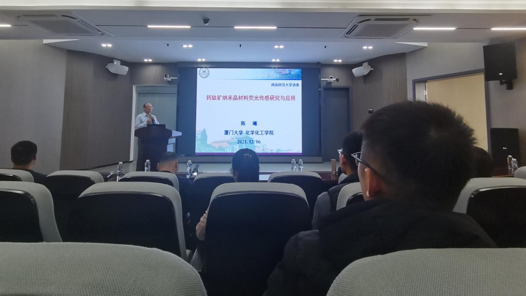 邀请,厦门大学化学化工学院陈曦教授于12月6日上午在达理206多功能厅作了题为“钙钛矿纳米晶材料荧光传感研究与应用”的学术报告,相关专业七十余名师生参加了报告,本次报告由汪庆祥院长主持。