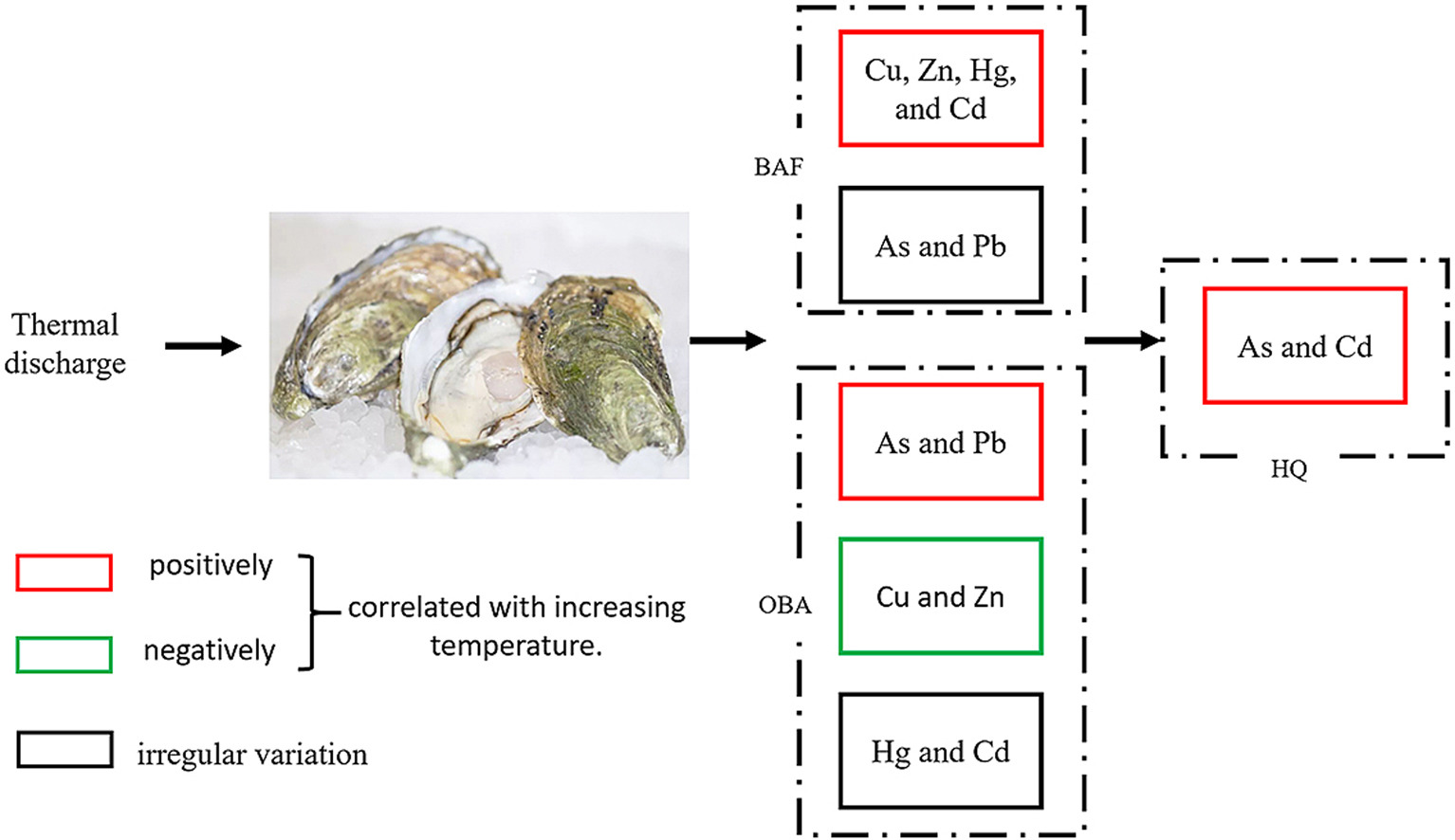 本研究以漳州市后石电厂温排水影响区的牡蛎为研究对象,探讨了不同程度温排水(温度梯度)下牡蛎体内金属累积的影响,分析了牡蛎可食用部分对金属的生物累积因子(BAF)和生物可利用度(OBA)。结果表明,升温导致Cu、Zn、Hg和Cd的BAF升高,而对As和Pb的BAF无显著影响。温度升高增加了Cd、As、Pb的OBA;却减少了Cu、Zn的OBA。按我国的标准,虽然采样区的牡蛎的重金属含量并未超过安全标准,但温度的增加却提高了食用牡蛎而造成As和Cd的潜在健康风险(HQ)。该结果同时也说明,未来海水升温的情况下,食用牡蛎或其他海产品存在着重金属潜在风险增加的可能性。
