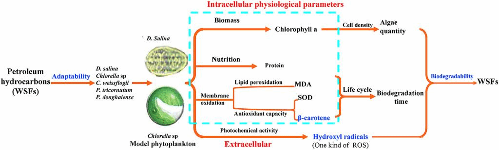 石油烃作为持久性有机物是《中国海洋环境状况公报》公布的近海主要污染物之一。浮游植物是近海生态环境中主要初级生产力,在生态系统中占据重要的位置,直接和生态系统中的三个功能相关(能量流动、物质循环和信息传递),可影响海洋食物网、全球气候变化,大气二氧化碳浓度和海洋生态系统功能,是污染物进入海洋食物链的起点,石油烃可通过浮游植物、以浮游植物为食的贻贝、桡足类动物等的生物富集,从而进入鱼类等大型动物体乃至人体内。