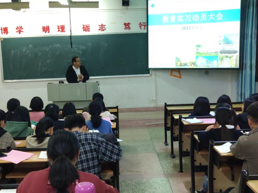 召开化学专业2016级教育实习总结会暨2017级动员会,学院副院长张茂升、化学系主任张燕辉、化学专业负责人黄明强、教学法教研室主任周凌云以及各实习基地的指导教师参加此次会议。会议由张燕辉主持。
