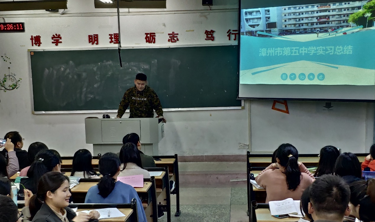 首先,2016级各实习队的代表向大家展示了各自一个学期内的实习工作情况,重点分享他们的收获与成长感悟。分享的过程中他们不约而同的提到了“角色转变”、“理论与实践相结合”两大主题,阐释了他们对教师责任的理解,通过实习他们对教师职业、教育教学工作有了更深入的认识。