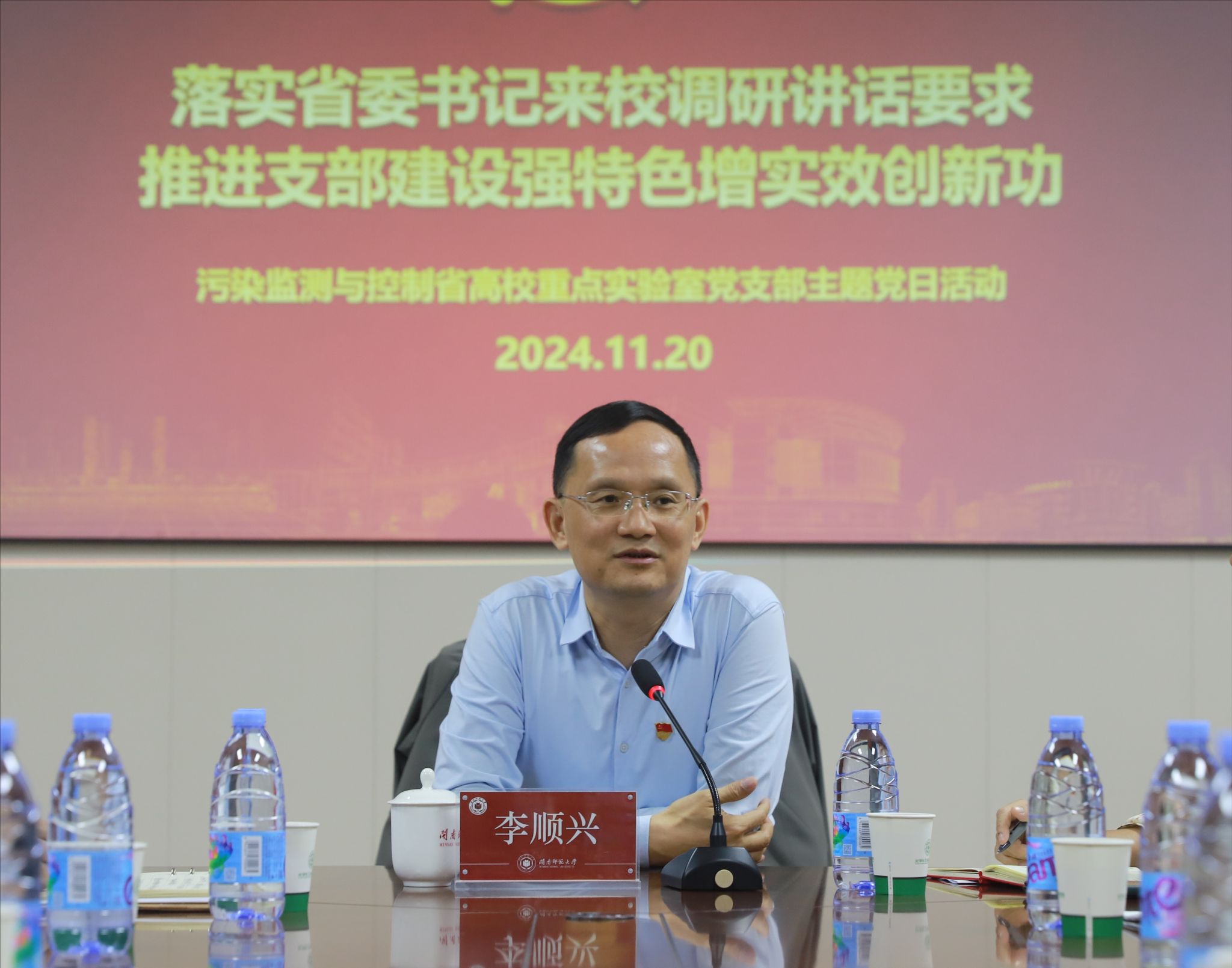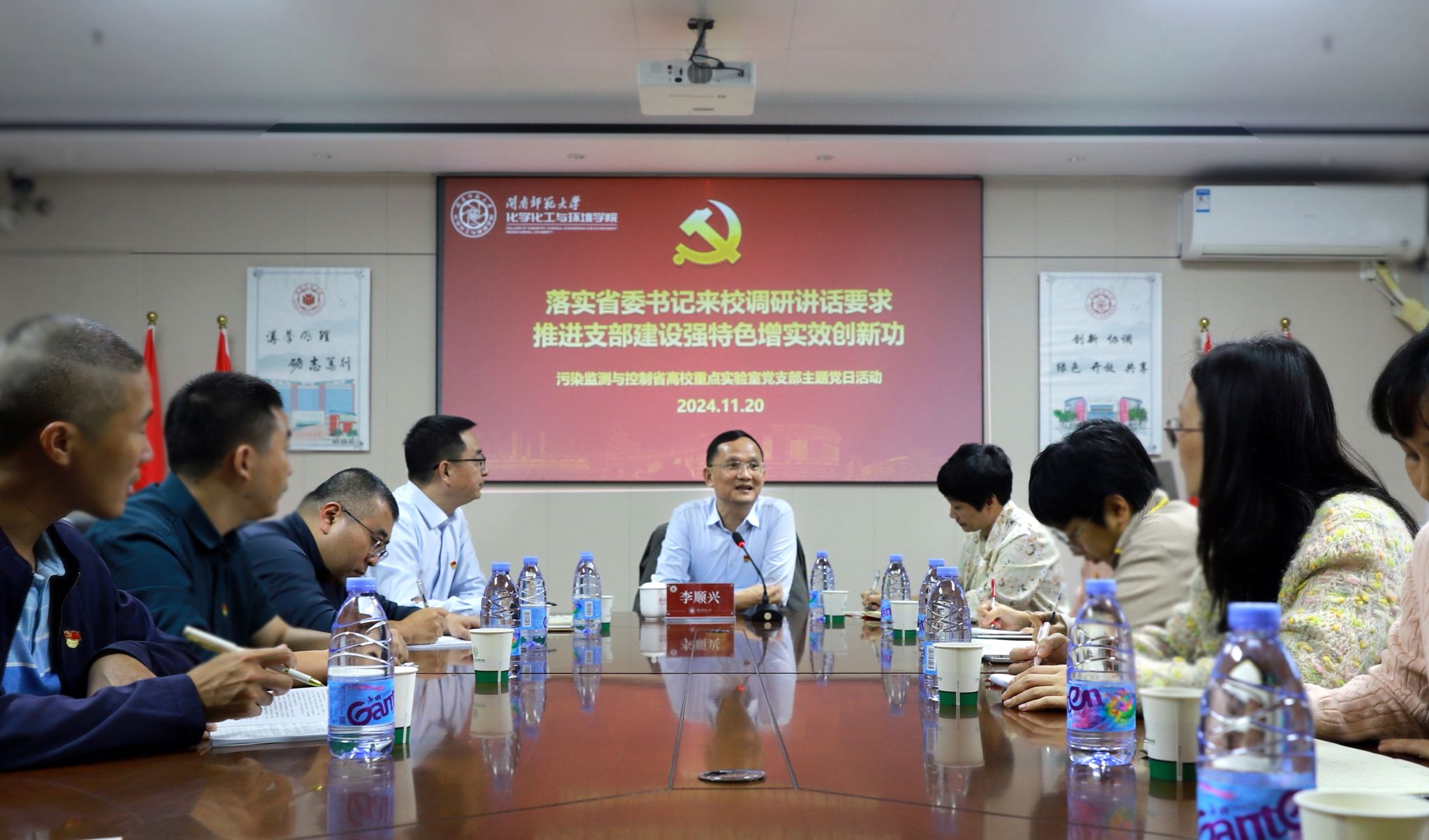污染监测与控制省高校重点实验室党支部在科信楼北1103会议室开展“落实省委书记来校调研讲话要求,推进支部建设强特色增实效创新功”主题党日活动,校党委书记、校长李顺兴作为学校第一支由校领导亲自担任的科研平台党支部书记主持此次党日活动,校党委组织部部长赵丽霞、色色动漫